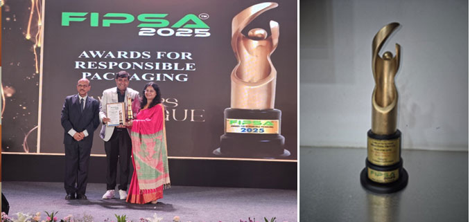 Organized by FIPS, in collaboration with NID MP (National Institute of Design Madhya Pradesh) under the Ministry of Commerce & Industry, Government of India, the award celebrates innovation that makes a real impact. The award was presented by Dr. Alka Rao, Advisor (Regulations, Science & Standards), Food Safety and Standards Authority of India (FSSAI), Government of India and Prof. N. C. Saha, Founder Chairman, FIPS recognising our ongoing commitment to sustainability and responsible design.